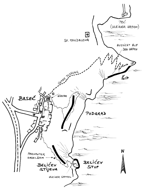 Brseč is a small historical village at the eastern coast of Istria. Despite the very busy coast road divers may be the only foreigners who ever may have noticed it. The rocky coast lacks sandy beaches and convenient access to the sea is scarce. Even the small harbour is only accessible using a wild and windy road. Therefore tourism stays away and Brseč remains a quiet treasure.